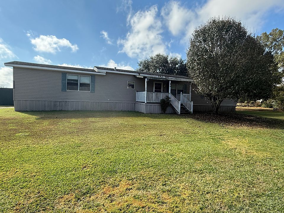 3 bedroom, 2 bath mobile home. Kitchen with refrigerator and stove. Washer and dryer included (owner not responsible for repair or replacement). Front and rear porches. Covered parking. Yard maintenance included. No Section 8. No pets. No smoking.