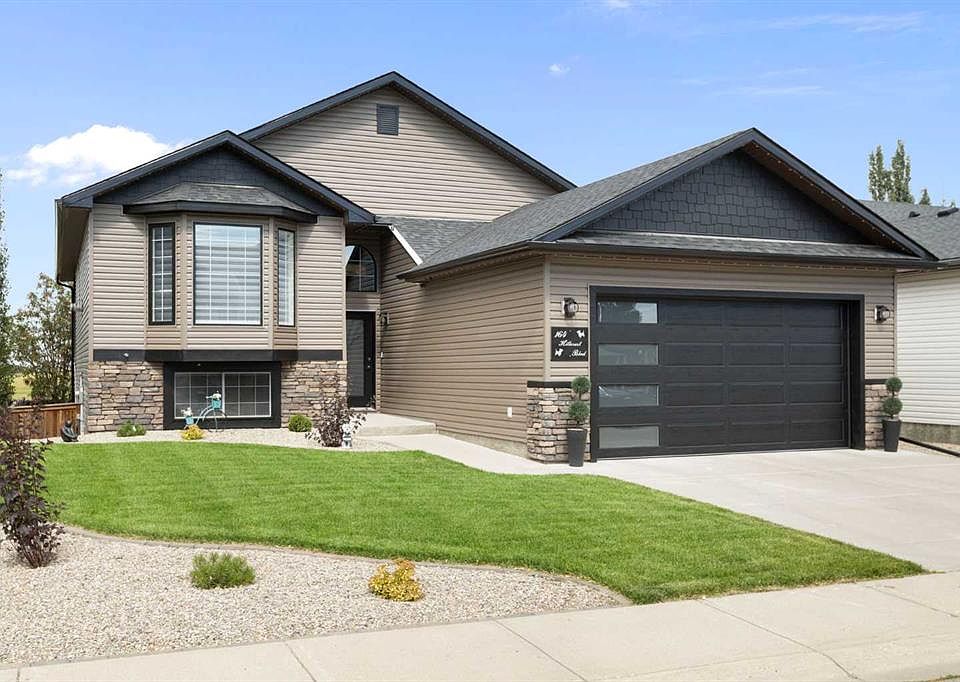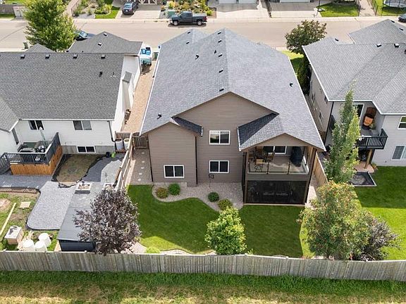 Exquisite 5-bedroom, three bathroom walkout! Welcome to a home where elegance meets comfort, and every detail has been thoughtfully curated. Perfectly positioned with no neighbors behind, this stunning bi-level offers a serene backdrop of wide open space and a long list of luxurious upgrades. From the moment you arrive, you’ll be charmed by the freshly landscaped yard, the new roof and eavestroughs, the new modern garage door and the oversized garage. Inside, natural light floods the open-concept main floor, where rich quartz counters sparkle against stainless steel appliances, and soft-close cabinetry with custom pullout drawers adds both refinement and function. Gather by the sleek electric fireplace or step onto the raised composite deck, adorned with glass railings and a gas line, to savor golden summer evenings and uninterrupted views. The primary retreat feels like a sanctuary, crowned with soaring 12 ft vaulted ceilings and a spa-inspired ensuite that invites you to unwind in luxury. Two additional bedrooms and a full bath complete the main level with both warmth and style. The second bedroom has a secret storage area behind the bookcase, designed for a play area, extra bed space or storage. The fully finished walkout basement is designed for both relaxation and celebration. Heated floors, a cozy electric fireplace, and a welcoming rec room with wet bar and pool table set the stage. Step into the luminous three-season sunroom with infrared heating and enjoy the beauty of every season while overlooking your private, fully landscaped backyard. Two spacious bedrooms and full bath complete the lower level. Every comfort has been considered—central A/C, central vac, and a brand-new 75-gallon hot water tank are among the many thoughtful upgrades. With its timeless finishings, gracious flow, and an idyllic setting, this Strathmore home is more than a residence—it’s a lifestyle.