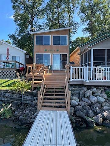 Rare opportunity to own a house on Provost Island! Includes a 2015 20ft StarCraft Pontoon, 7 sections of Shore Station dock, Shore Station boat lift, and a 2014 34ft boat trailer. This cabin enjoys a 3/4 bathroom on the main floor, a kitchen with Hickory cabinets and appliances included, living room, and a back porch. The upstairs has 2 bedrooms, 1/2 bath, a rec room with storage for lake gear, and lastly an extra room for a bed or additional storage. The house is finished with Red Cedar wood. This house is on leased land. New siding coming soon. If you hurry, you can choose the color!
