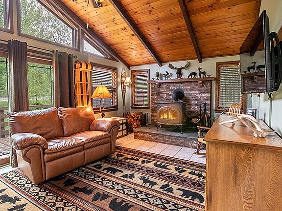 Pristine Adirondack compound, perfect for group activities, located on 4 acres with a lovely backyard and flowing stream. Located ideally only 8 minutes to Whiteface Mountain for skiing! The main house has 3-4 bedrooms, remodeled kitchen, large living room with raised woodstove, game room and wrap around deck. There is a 1 bedroom cottage, fully furnished, for extra guests or rentals and RV paved parking area for a 50' Class A bus Port. The pole barn is 24 X 24 with 2 carports for extra storage. The Backyard play area has screened Gazebo, Firepit, Horseshoe Court, Bocci Ball, Golf putting green, Volley Ball Court and Barbeque area near the stream. This listing includes parcel # 35.2-2-19.000
