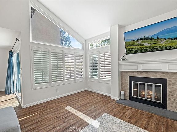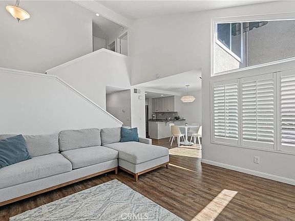 This exceptionally inviting home, seamlessly blends modern luxury with comfort.A beautiful abundance of natural light pours into the home, enhancing the stylish modern interior that creates a warm, welcoming, and peaceful atmosphere.The spacious entryway opens to a bright and airy floor plan, featuring a generous living room with soaring ceilings, a cozy fireplace, and a wall of windows that flood the space with abundant natural light. The newly installed modern flooring enhance the brightness and warmth throughout the first floor. The separate dining area opens to both the living room and the stylish kitchen, and is elegantly connected to the expansive backyard through graceful French doors, creating a seamless indoor-outdoor dining experience. The kitchen boasts stunning Quartz countertops, durable solid wood cabinetry with build-in drawers, stainless steel appliances, and a breakfast bar, offering ample storage and inspiring culinary creativity. The indoor laundry room includes cabinetry and provides direct access to the one-car garage. Upstairs, you'll find two spacious, well-lit bedrooms and a modern bathroom. The primary suite includes a vanity area and a large walk-in closet, with windows overlooking the generous private backyard. The second bedroom is also filled with natural light, providing a comfortable and inviting space. The entire home is equipped with custom wooden shutters, allowing for precise light control while offering enhanced privacy. Additionally, the entryway includes a convenient powder room and a storage nook beneath the stairs, adding convenience . At the front of the property, you'll find a covered parking spot, with additional parking available just a few steps away. Nestled within the prestigious Irvine Unified School District, this home offers access to top-rated elementary, middle, and high schools. The community boasts an impressive array of amenities, including two sparkling swimming pools, two rejuvenating spas, tennis courts, a sand volleyball court, a soccer field, a playground, and BBQ areas. Conveniently located within walking distance to the UTC shopping center, golf courses, William R. Mason Regional Park, various scenic trails, and UCI, this property provides unparalleled ease of access to freeways, renowned beaches, and vibrant shopping destinations.