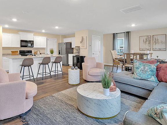 The Elston floorplan at Archer's Pointe in Johnson City is a lovely two-story home. Upon entry, the spacious kitchen overlooks the open concept living and dining areas. The kitchen has a large