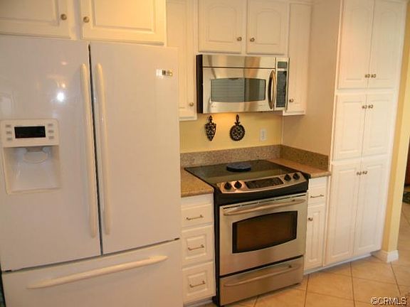 Beautifully remodeled Country Road gem with Two Master Bedrooms with a gorgeous kitchen & an exquisitely upgraded master bath, all in a quiet and private interior location! Starts w/ Remodeled Kitchen with Elegant Silestone Counters w/ bullnosed edges, Stainless Steel sink, upgraded fixtures, GE Range and Kenmore dishwasher, recessed lighting, cutting board, even a double wide pantry! Rich ceramic tile flooring throughout the downstairs, with a spacious living room w/ scraped ceilings, brick fireplace with a large brick hearth, all opening to the informal dining room with a wonderful chandelier. Huge Master bedroom (13' x 13')has double door entry w/ vaulted ceilings, walk-in closet w/ organizers and a completely remodeled master bath. Dual sinks, recessed lighting, elegant ceramic flooring, & gorgeously tiled shower walls, an extra large tub & custom shower heads. Direct acc ess from garage to home through a peaceful and private sitting/entertaining area lined with brick pavers and through an extra tall vinyl glass slider. Even the 2nd bedroom is spacious and has vaulted ceilings with an extra large closet w/ organizers. Inside laundryroom,upgraded Payne HVAC system,office area under stairs,double linen cabinets & garage w/ workbench & extra storage!!