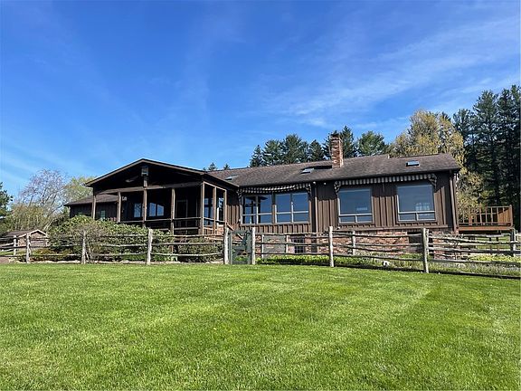 Outside in, inside out. Nature is the theme in this absolutely stunning ranch with an open floor plan. The number of large windows frame the picturesque scene of the outdoors which features a well-manicured 7-acre landscape, including two ponds, and raised flowerbeds. The location is sure to please whether you're looking to live close to town, take to the ski slopes, hike the hills, or frequent the local eateries. Entertaining is made easy with the abundant space of the great room off the spacious kitchen. A comfortable temperature is maintained with the recently updated geothermal system. This home will fit every stage of life with living all on one floor, three bedrooms with the master having a generous walk-in closet and newer walk-in shower. How about your pup? There is even a kennel with heated floors and a large fenced-in run. This home has it all!