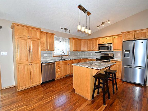 This stunning 2008 bi-level home seamlessly blends modern style with practical functionality. The open-concept main living area boasts vaulted ceilings, hardwood flooring, and a tile entrance, creating a sense of spaciousness. The kitchen shines with stainless steel appliances and newly updated granite countertops. The master retreat is a serene oasis, nestled above the garage with a walk-in closet and luxurious 4-piece ensuite bathroom. With four bedrooms and three 4-piece bathrooms, this home offers ample space for families. The finished basement adds significant value, providing an additional bedroom,and full bathroom. Modern conveniences include an on-demand hot water system and air conditioning. The expansive family room is perfect for a pool table, home gym, play area, or game room. Outside, enjoy the 24x24 heated garage, 20x13 back deck, and beautifully landscaped yard with mature fruit trees and convenient RV parking with back-lane access.