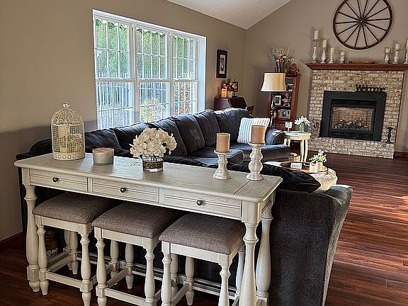 Stacked stoneMaster bedroomFinished basementInground heated swimming poolDining roomNice landscapingVaulted ceiling