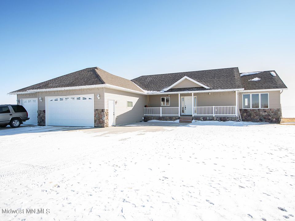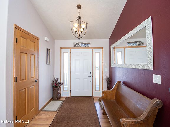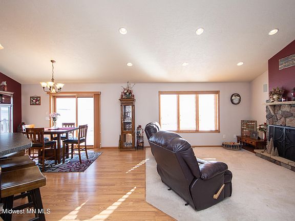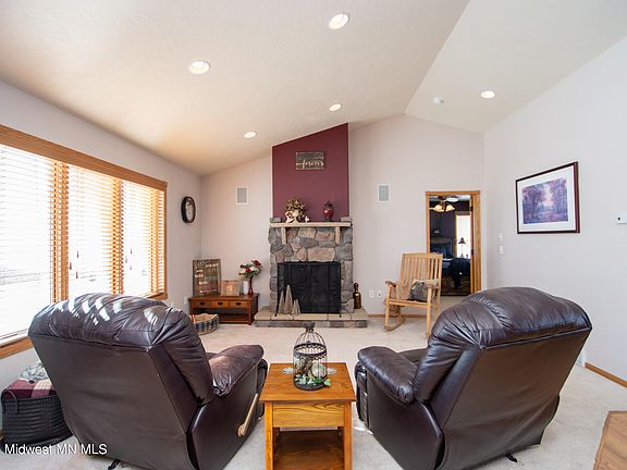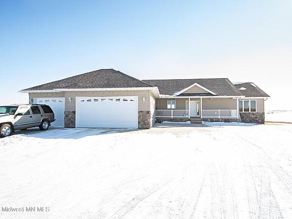 Country living on 11 acres just minutes from Hawley! This open concept home offers 5 bedrooms, 3 bathrooms, basement floor heat and a 3 stall finished, heated garage. Main floor boasts large windows, custom cabinets, stone fireplace and master suite with private bath + walk-in closet. Spacious family room in walk-out lower level is perfect for entertaining. Head outside to a covered front porch or maintenance free deck. Shelter trees are in place and sunsets are beautiful! Come check it out for yourself!