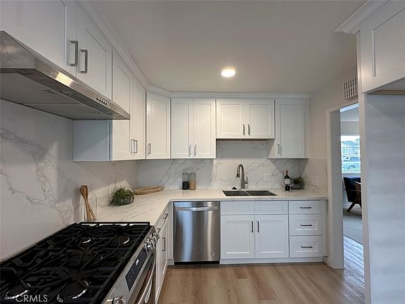 Freshly renovated, this home features new interior and exterior paint, giving it a crisp, inviting look. The features luxury vinyl plank flooring throughout, complementing the stylish ambiance. The kitchen is a chef's delight, equipped with stainless steel appliances, a dishwasher, and a sleek basin sink with a gooseneck faucet, all set against newly installed shaker cabinets and quartz countertops.