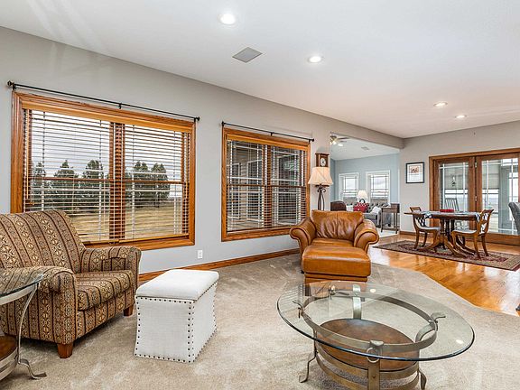 WOW! Perfect walkout ranch on 1.66 acres m/l just minutes from Manchester. 4 bedrooms plus 1 non-conforming, 3.5 baths, 3 car garage. 30'x54' heated outbuilding with an asphalt driveway. Stunning home with open floor plan. Granite kitchen with wood floors and pantry. Large dining area. Gorgeous 4-seasons room with large windows. Screened porch with windows. Huge Master Suite with custom tile shower, double vanities and walk-in closet. Finished lower level with wet bar and built-in entertainment center; perfect for entertaining. Large pavers patio to expand the outdoor possibilities. Zero steps into the house! Geothermal, whole house generator, private well, air exchange system, central vac, surround sound, all appliances stay...everything you could want in a sprawling, beautiful home! Truly move-in ready. Located just off Hwy 13 south of Manchester on a hard surface road.
