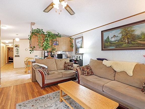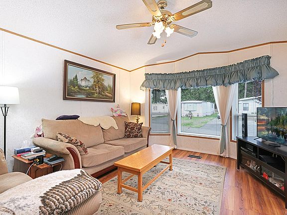 Located in Park Plateau, a neat and tidy, well-maintained mobile home built in 1996 boasting a bright, spacious plan of 784 sf, 2 BD/ 1 BA. This bare land strata offers low strata fees, underground services and each property owns their land, providing a fantastic option for affordable home ownership! With vaulted ceilings and Southwest exposure this lovely home has a new forced air furnace and Heat Pump (2025) for efficient heating in the cooler months and air conditioning in the summer months, Hot water tank (2024), Poly B plumbing replaced 2024, tie downs, new vinyl plank flooring in the living room, roof (2009), 200-amp service. A private, level yard .09 acre ideal for relaxing on a warm summer afternoon or picking the fruit from the bountiful apple tree. A garden shed & shared septic system w/ the neighbouring property. Fantastic location, close to all amenities, Costco, the Hospital, Aquatic Centre, parks & trails, 2 dogs or 2 cats or 1 of each, no age or rental restrictions.