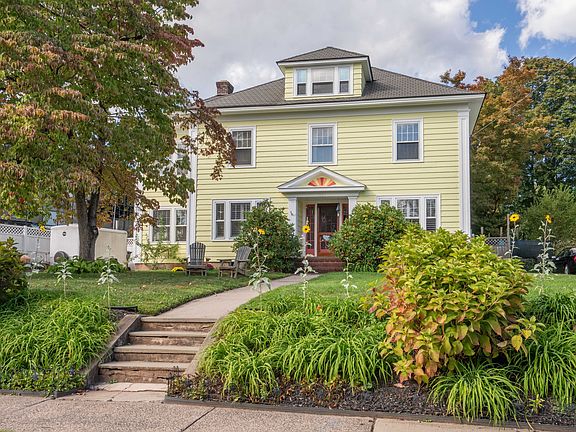 It's hard to find a house as cheery, bright, and sunny as 1640 Boulevard. Located steps from West Hartford Center, this is truly a family sanctuary in a superb location! The eat-in kitchen includes room for a full dining table, custom wooden cabinets, and a Viking stove. Across the center entry hall is a living room with working fireplace and a sunroom for your plants. The unique layout offers the advantages of an open floor plan while preserving traditional coziness, with French doors and hardwood floors throughout. A pantry with plenty of cabinets, washer and dryer, and a powder room are located off the kitchen. The second floor includes four bedrooms and a full bath. The master bedroom features a walk-in wardrobe closet and a sunroom which can double as an office. The finished attic has a full bath and is ready for the installation of a compact kitchen, for an extra "mother-in-law" space, if desired. Out back, you'll discover a private, magical oasis. Entertain on the huge deck and low-maintenance fiberglass pool with spa jets. There are even raised beds for your vegetables and herbs! The colorful, informal gardens surrounding front and back feature flowers from Spring through Fall, including some of West Hartford's first daffodils, thanks to the southern exposure. With excellent schools, nearby parks, amenities, and a vibrant downtown, 1640 Boulevard is a warm and welcoming home for your family in the area's most desirable neighborhood.