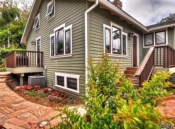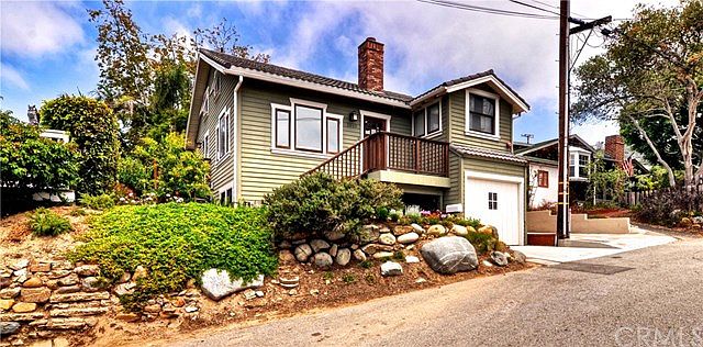 This ocean view cottage is located in the lovely Laguna Beach neighborhood of "Woods Cove". The house was extensively renovated in 2010 by the renowned Nicol Architecture firm. The floor plan has been masterfully re-configured into an exceptionally versatile living space while maintaining the original charm. Features include; kitchen with custom honed granite counter tops, stainless appliances, solid hickory wood floors on main level, solid Douglas fir floors on upper level, living room fireplace, beautiful marble baths, French doors, central heating and air-conditioning, separate interior laundry room, direct access to garage, lovely patio fountain and vintage potting shed. The home is rated "C" by the City of Laguna Beach Historic Preservation. Located three and one half blocks to the beach, Surf and Sand Hotel, restaurants and shops!