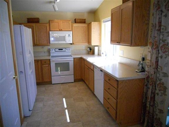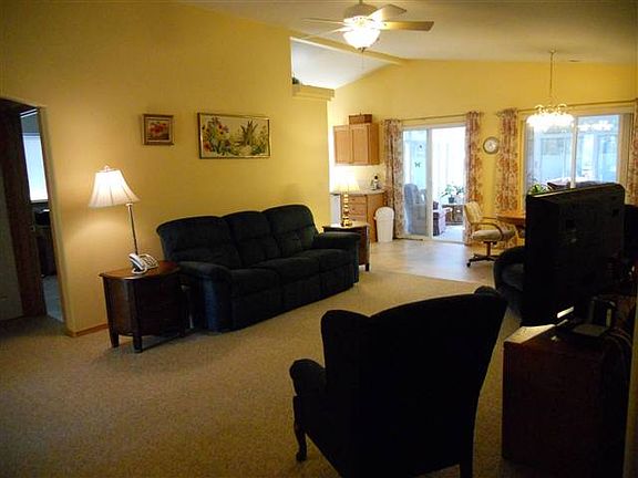 Meticulously maintained one-owner custom built in 2004. The "Saratoga" plan by Greenstone - very open great room design. Beautiful sunroom opens to patio for future hot tub and enclosed entry keeps the weather outside where it belongs. Updated kitchen w/Corian-type tops, high vaulted ceiling in great room, master separate from others w/huge walk-in, fncd yrd, sprinklers, garden shed and more! Master has huge walk-in, tons of storage cabinets in garage.