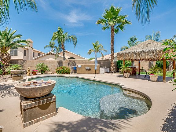 Gorgeous 5 bedroom, 3 full bath home in a highly desirable Gilbert location.Oversized lot with entertainers backyard oasis. Sparkling pool with water feature, above ground jacuzzi, custom palapa, lush landscaping with extended covered patio. Home offers vaulted ceilings, family room with dining area and a great room off the kitchen. Kitchen boasts granite counter tops, updated back splash and stainless steal appliances. Large master suite with double doors and walk in closet. Double RV gates , shed with concrete pad, extended driveway parking for 3. New interior paint throughout. Updated front walkway. Hurry this one won't last!
