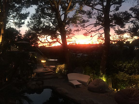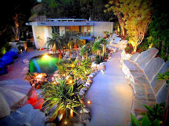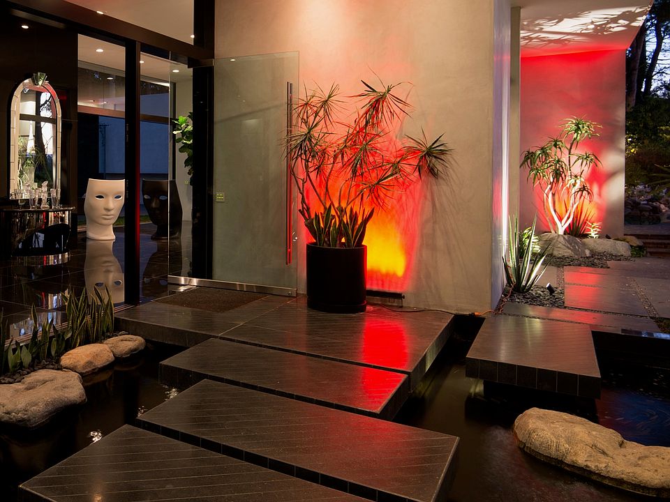 The personal residence of Trousdale Estates' most famous architect Edward H. Fickett, F.A.I.A.. Perched behind gates and up a long prestigious driveway, this Mid Century masterpiece is set on one of the best lots in Beverly Hills with a N/S tennis court, pool & spa, and ample spaces for outdoor entertaining. The home features granite floors, floor to ceiling windows and doors, and custom cabinetry. Modern metal gates take you up a lush driveway to a large carport. Step over a koi pond and pass a serene fountain to enter the beautiful open floor-plan living and dining areas. A guest bedroom and luxurious theater make up the first floor. Upstairs offers a sitting area leading to a sumptuous master suite with a kitchenette and oversized closet. Steps take you down to the pool and spa situated in a tropical grotto with 4 fire pits, an outdoor kitchen, and generous seating areas. The full-sized lit tennis court completes this remarkable estate. The property features a wonderful guest house with full bath.