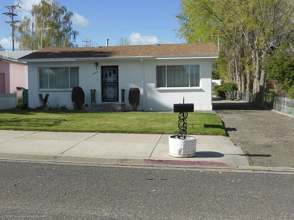 This home has good bones, built with blocks and has an attached two-plus carport built with the same blocks and has two walls closed in. Storage and work area in carport. Two bedrooms and one bathroom. New interior paint and floor covering, updated bathroom. Laundry room with washer and dryer. Alley access in the back.