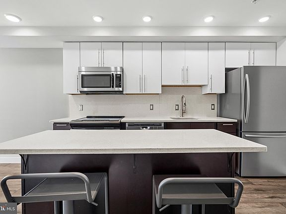 Step into modern comfort and urban convenience at Kings Landing Condos! This bright and airy second-floor unit boasts two spacious bedrooms and 2.5 well-appointed bathrooms. The sunlit living area, adorned with engineered hardwood floors and LED recessed lighting, creates a perfect backdrop for both relaxation and entertaining. The kitchen is a chef’s delight, featuring impressive 42" cabinets, sleek stainless steel appliances, and stunning quartz countertops. An inviting island not only expands your workspace but also offers extra seating, making it a hub for gatherings. Natural light pours in through large windows, enhancing the open, welcoming feel of the space. The first-floor bedroom offers a full bath complete with a vanity, separate toilet room, and a stylish frameless glass shower. Conveniently located next to the kitchen is the laundry area, making chores a breeze. Upstairs, the second bedroom offers an en suite bath and a generous walk-in closet for all your storage needs. With low condo fees and several years remaining on the tax abatement, this condo is a savvy investment. Just a short stroll to amazing restaurants, shops, parks, gyms, and public transit. Experience urban living at its finest in this exceptional community!