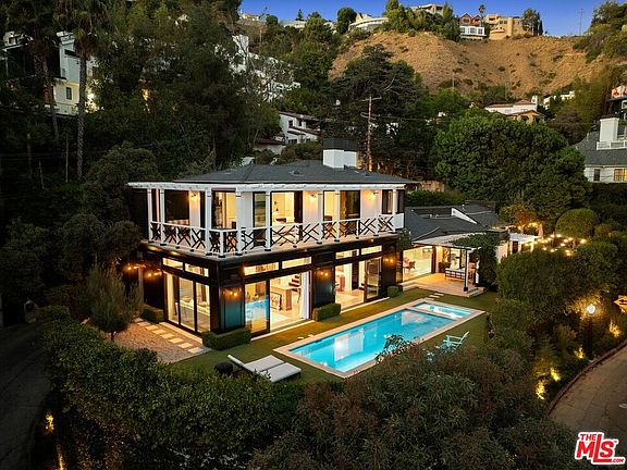 As the sun sets over the iconic Sunset Strip, this home showcases an unparalleled front-row seat to the magic of twilight. You're greeted by an expansive living room with sexy fireplace and handcrafted millwork. The adjoining chefs kitchen, drenched in natural sunlight, sumptuous marble and custom woodwork. Your eye is immediately drawn outside- Fleetwood sliding glass walls blur the lines between interior and exterior.Extending throughout the main floor are mesmerizing views of the garden and pool from all rooms including the adjacent Family and Dining Rooms. Adding to the drama of this space are custom floor to ceiling draperies, bespoke lighting & 11 ft ceilings. A separate wing highlights 2 bedrooms and 2 bathrooms designed with style and sophistication.The second floor is your own private oasis, the primary suite encompasses the entire floor. Tastefully designed and meticulously appointed, complete with an enormous spa quality bathroom and walk in closet of your dreams. A generous outdoor wrap around deck and patio overlook the pool and offers the most gorgeous of Sunsets or perfect setting for morning coffee.The large, flat yard is highlighted with a pool and spa, built-in BBQ, fireplace with sitting area and a large dining area. The lush landscaping is complemented by limestone decking, faux grass, and olive trees. The entertainment options are endless- ideal for hosting a large-scale or intimate dinner party. While nestled North of Sunset, you are just a stroll down to The Sunset Tower, Soho House, Bird Streets Club, and a quick drive to Studios.