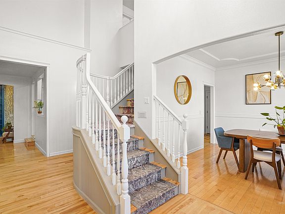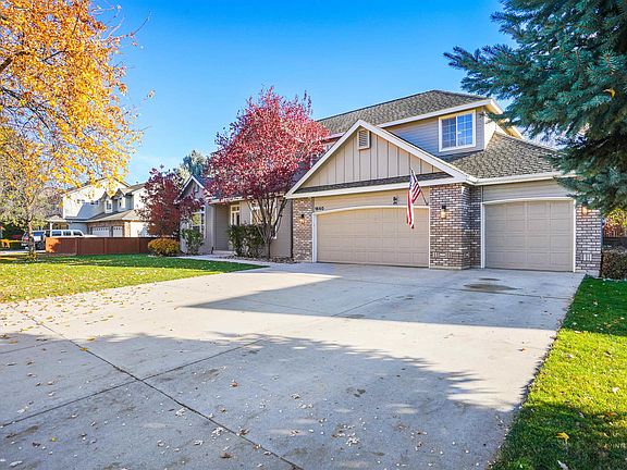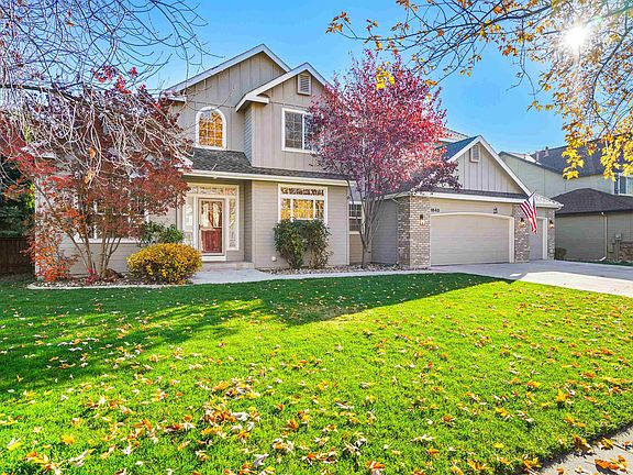 Beautifully crafted home with two primary suites and timeless curb appeal in one of Eagle’s prime communities. Nearly 3,000 square feet of thoughtful design featuring 5 bedrooms, 3.5 baths, and a layout that blends comfort, character, and flexibility; all within a quiet neighborhood known for low HOA fees compared to nearby communities. Sunlight fills the interior, accenting custom wood built-ins, detailed trim work, and the warmth of hardwood flooring. The kitchen showcases new cabinet faces, granite countertops, a large island, gas range, double ovens, and abundant storage ideal for daily living and entertaining. With two primary suites, including one on the main level, this home offers flexible living for guests or extended family. The main level suite opens to the patio and features a serene spa-like bath with a soaking tub and dual vanities. Outdoors, enjoy a pergola-covered patio surrounded by mature trees and lush landscaping on a fully fenced .23 acre lot. Oversized three-car garage with room for storage and hobbies. Ideally situated just off Floating Feather Road, moments from downtown Eagle, top-rated schools, walking paths, coffee shops, and golf.