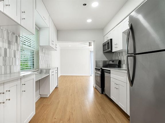- Exterior features: 2 Spaces, Blinds/Shades, Den/Library/Office, Electric Water Heater, Exterminator included in rent, First Floor Entry, Flooring: Wood, Gardener included in rent, Heating system: Central, Heating: Electric, Less Than 1/4 Acre Lot, Lighting, Lot Features: Less Than 1/4 Acre Lot, On Street, Panic Alarm, Patio, Porch, Porch/Balcony, Slab/Strip, Storage Room