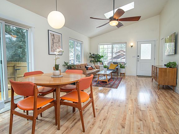 Architecture and interior design combine to create this meticulous 2022 rejuvenation of a 1995 build. The location is ideal. So close to Downtown Bend, the Galveston Corridor with shops, restaurants and Pubs galore, and Overturf Park a few homes away. The interior space was beautifully created with an essential neutral color palette. Light fills each room with added light from skylights in the living room. Environmentally conscious finishes include laminate floors and quartz countertops. An open concept living space combines living, dining, and kitchen. Two bedrooms and two well-designed bathrooms. The kitchen incorporates clean modern lines in the cabinets and counters. The home is placed in the center of the lot with natural landscaping, and raised beds that all sit back away from the quiet street. The front has a welcoming waist-high, gated fence, with private full-height 6' fences in the back and side yards, both gated. Two patios, one off the dining area, and one out the master.