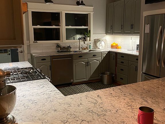 Newly remodeled kitchen, quartz countertops, high quality plywood cabinets with pullout drawers in cabinets, under cabinet lighting, pot filler above stove, all new stainless appliances: Samsung gas range (air fryer!), KitchenAid dishwasher, and KitchenAid Refrigerator.