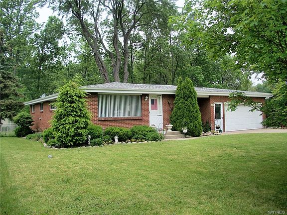 Adorable all brick Ranch on lovely street with 2 car attach garage. Nice sized living room w/ hardwood floors under carpeting & lg bright windows. Spacious kitchen w/stove, fridge & dishwasher plus tiled backsplash and large bright window. 3 nice sized bedrooms w/ hardwood under carpets. Spacious bathroom and linen closet in hall. Basement is partially finished w/bar, glass block windows and loads of storage space. Fully fenced yard w/large patio and awning frame. 2 yr old Sahlens Roof-stripped. Hot Water tank- 1 yr., updated breakers. Washer & dryer stay. Star $439. Garage with elect opener and rear door to patio.Freezer in the garage. Free standing generator.