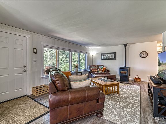 Experience the country lifestyle you crave in this 3-bed, 2-bath Port Orchard home on 2.3 pastoral acres! An open-concept interior features chic wood-style flooring, a pellet stove that warms the living and dining rooms, and a modern kitchen with inspiring views. Host outdoor gatherings on the covered patio overlooking the fully fenced yard. Bonus items are an office, newer HVAC, 25x28 workshop with 220-amp power, stable area, chicken coop, and fire pit. Come for a tour today!