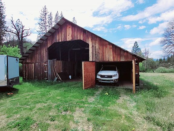 Cozy Country Home, Barn, Workshop, Gardens on 7.12 Acres! Welcome to your country dream! This charming 2-bedroom, 1-bath home sits on flat to gently rolling land with mountain views. Inside, the cozy home features a spacious, open kitchen, a bonus room off the back, large pantry/storage spaces, laundry room, and a warm woodstove. A craftsman's paradise awaits with a huge 2,500 sq ft metal workshop - perfect for mechanics, woodworkers, or? Featuring its own enclosed paint spray room and separate access off Wingert Road. The large barn features newer post and pier supports, power, water, two converted garage bays with concrete floors, and 220 V RV hookups. The property includes a large solar panel system located at the front - just needing batteries to be fully operational, plus a generator shed ready for a generator, and with city power also, you have excellent options for your power needs! Enjoy the bounty of your land with multiple garden spaces , a cold storage building, a greenhouse w/storage area, and a woodshed. The creek flows through the heart of the property, along with it's soothing sounds. Your water needs are supplied by a rumored never ending spring, housed in a large redwood box near the house. Bring your animals & hobbies!