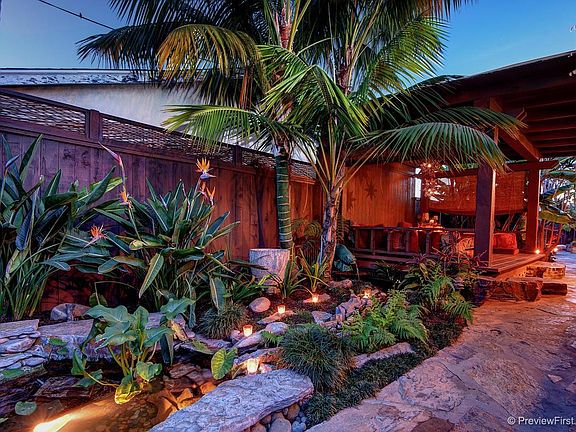 **Rare Single Level Home on a Corner Lot! ~ Exclusive Location in Cambridge Estates, Eastside Costa Mesa's best kept secret! ~ Exquisite Indoor/Outdoor Living with Mature 30 foot palm trees surrounding the perimeter of this private Tropical Paradise. Rock waterfalls into a gorgeous custom pool, multiple fire pits, tranquil Koi Pond with the most lush and unique foliage, outdoor lighting enhancing the special feature.... a Large Outdoor Built-in Gazebo Lanai which seats up to 12 for enchanting entertaining! Take your time exploring the hidden intricate features from Bali as you spend time touring this property. Highly upgraded home, improvements include: New Central AC, Heating and duct work, Recessed lighting throughout, stainless steel double ovens, surround sound speaker system, freshly painted inside and out! Oversized 2-car garage drywalled, painted with epoxy flooring. Home has 4th Bedroom/Guest Room Option with private, separate access with its own sitting area and edible raised bed garden! If you Love the Indoor/Outdoor Lifestyle, this unique property leaves nothing left to be desired!