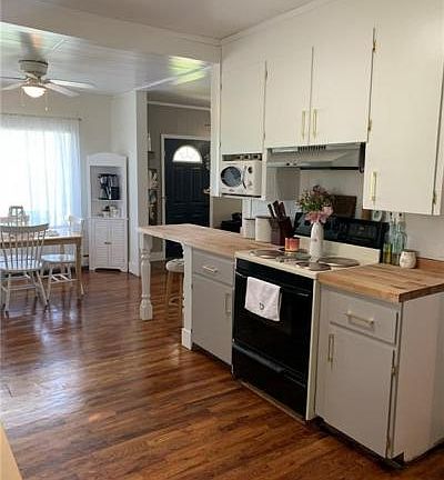Love where you live! This adorable Modern farmhouse inspired home checks every box. On almost an acre of land youre free to enjoy your spacious backyard underneath the covered patio all summer long. Inside the home, you will love the refinished natural hardwood floors and open concept kitchen and dining area.The farmhouse kitchen offers butcher block countertops and farmhouse sink. Fresh paint throughout the home and updated bathrooms include new flooring, light fixtures, toilet and sink. Other updates to include new garage roof, back deck, front porch and hot water tank.This home wont last.