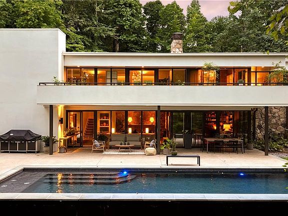 Completely furnished rental - just bring your toothbrush! Everything included in price - all utilities, yard, pool, etc... Tucked away at the end of a quiet cul-de-sac, this exceptional gated estate offers absolute privacy and serenity. Designed in 1974 by Robert Green, the last living apprentice of the legendary Frank Lloyd Wright, the home is a masterful expression of organic architecture. Green was known for his ability to seamlessly integrate structure with nature, and this residence is a rare example of his celebrated work in Atlanta a living piece of architectural history. Set on over 2.33 acres, the grounds are a tranquil escape, with lush, mature landscaping that unfolds into serene outdoor living areas. A striking outdoor fireplace anchors one of several gathering spaces, and the Zen-inspired pool is surrounded by perfectly manicured greenery, creating a true backyard sanctuary. Step inside, and the connection to nature is immediate walls of floor-to-ceiling glass blur the lines between indoors and out. The home has been fully renovated with a sleek, modern sensibility, blending clean lines with organic warmth. Every finish is thoughtful, refined, and current. An expansive dining room features a wall of floor-to-ceiling glass windows and doors that open to a treetop-level deck, giving the illusion of dining in a luxurious treehouse. The kitchen is a showstopper: stone countertops extend up the backsplash and entire sink wall, overlooking the outdoor fireplace. High-end Wolf, Subzero, and Bosch appliances, elegant custom cabinetry, and an airy breakfast room elevate the space. The den offers a cozy retreat, complete with a separate office space, while a large laundry room with second refrigerator and extra storage adds convenience. Four beautiful bedrooms and two designer bathrooms round out the main level. Downstairs, the terrace level is an entertainer's dream. Every main space has full-length glass windows and doors to the stunning backyard and pool area, creating seamless indoor-outdoor flow. The architecture channels the glamour of the 1970s with a Sinatra-meets-modern-chic vibe, making it the ultimate space to host or unwind. A spacious entertaining area complete with wet bar leads directly to the pool, while a separate den or office offers a stylish man cave or creative escape. The primary suite is a luxurious retreat with its own fireplace, floor-to-ceiling views, and a spa-like bath wrapped in rich stone. A deep, luxurious tub, oversized glass-enclosed shower, and dual vanities complete this serene sanctuary. This residence truly redefines California Chic, delivering timeless style with a contemporary edge. Located in Winterthur Estates, one of Sandy Springs' most scenic neighborhoods, this home enjoys access to exceptional community amenities. Situated along the Chattahoochee River and Cochran Shoals National Park, residents enjoy direct river access, tennis and basketball courts, and a neighborhood park. Despite the peaceful setting, you're just minutes from both Buckhead and Sandy Springs, with world-class dining, boutique shopping, and top-rated schools all within easy reach.