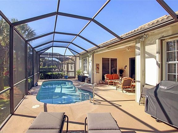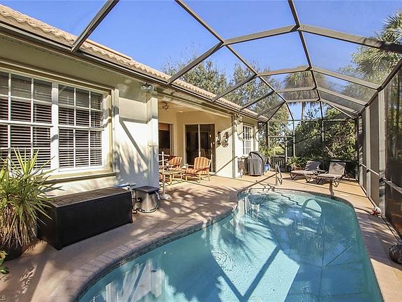 Lots of privacy on this SOUTHERN exposure pool home in Crown Colony. It is located on the corner and backs up to a beautiful landscaping, while also allowing a golf course view from the side of the home. IT is being offered TURNKEY FURNISHED, ready for you to start living the Florida dream! Many improvements including a pool and screen addition in 2011, newer stainless steel appliances, granite countertops and laminate wood-like flooring. This home has 3 full baths- allowing for 2 guest suites. While it is listed as a 2 bed with a den, the den is oversized and features a full bath with a linen closet. Easy open and shut accordion shutters are on every window for peace of mind during storm season. You will love the huge primary bedroom with a sitting area and sliders to the lanai. The closet has built-ins and the bath features a tub and shower. Beautiful neutral decor throughout including crown molding & volume ceilings. Crown Colony is a 24 hour guard gated community located near Sanibel, Fort Myers Beach, shopping and dining. The Golf Club is optional and private. Fees include lawn care, X-1 cable/internet package, and more!