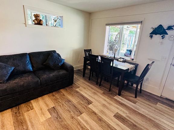 This rental property is an additional dwelling unit on a property owned by the landlord. It was completely refinished in 2022, including the kitchen. The total square footage of the livings space is 510 sq ft. It is divided into open plan living room plus kitchen, a separate bedroom. It has 1 bathroom (also redone in 2022) off of the kitchen/living area. There is one covered parking space included in the rent. There is a private deck with a firepit on the side of the unit. There is a large grass back yard shared with the owner that backs up to a wooded area. The rent includes a 6ft by 8ft locked storage space.
