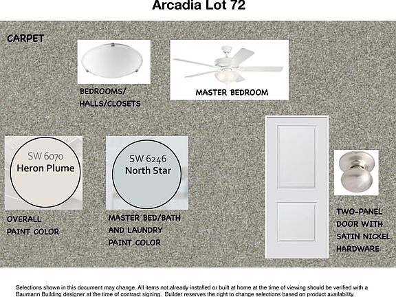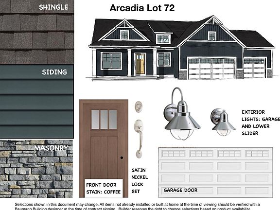 Coming soon in Arcadia, this new construction Ranch Style home was built by the Award Winning Baumann Team! Featuring just over 1500 square feet, main floor laundry, 2 bedrooms, 2 baths, Cathedral ceilings, spacious master suite with walk in closet and dual sinks. You will love the ease of main level living! This open concept home features stainless steel appliances, a large pantry, a quartz kitchen countertops and 3 stall garage. The unfinished lower level allows room to grow with the possibility of 2 more bedrooms, full bath and large recreation room! With easy access to the paths leading to the Spring Lake aquatics center, Jeffers Elementary and Spring Lake High School. Arcadia Woods strives to meet the needs of every age and lifestyle. Providing fishing docks, community pavilions, beaches, fire pits, park expansive green space provides provide endless opportunities to enjoy your new neighborhood The luxury of a new concept community with the feel of a traditional Spring Lake neighborhood, come experience all that Arcadia has to offer!