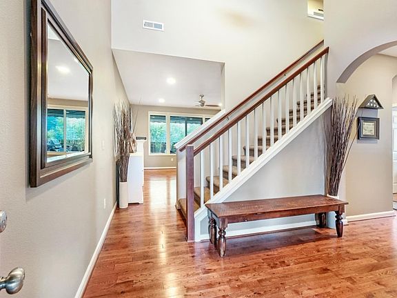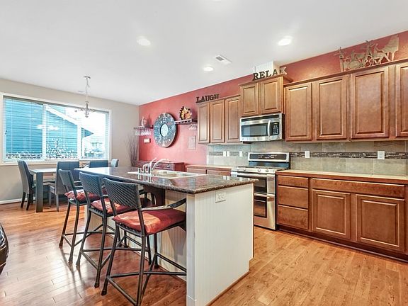 This well-appointed home wont disappoint. 4 beds, 2.5 baths, bonus rm & den. Beautiful main floor hardwoods. Open kitchen w/ tile, SS appliances & granite island. Custom blinds thru-out. Private Backyard Oasis w/ covered decks, gas fp & gas patio heater. 15 ft SunSetter motorized retractable awning w/ auto wind sensor. 5+ person BirchBay hot tub. Fully fenced w/ 35'x12' concrete RV pad & 30A outlet. Hot/cold spigot, raised gardens w/ drip lines & sprklr system. Large community park to enjoy!