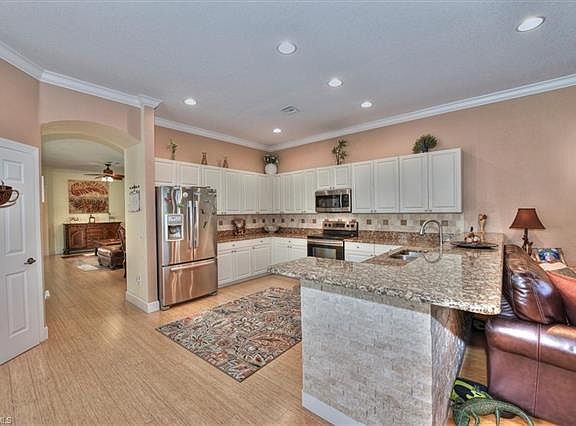 GREAT VALUE in the Crown Colony with over 2200sf. Single family, one level home with 3 bedrooms, 3 baths 2 car garage includes solar plus electric heated pool. The Spoonbill model features 3 bedrooms, 3 baths including 2 two en-suites, a large open kitchen and family room coupled with additional formal living and dining space ideal for entertaining all opens to the pool area. Easy to keep wood flooring throughout, window coverings including plantation shutters. A large, enclosed lanai contains the pool and an area for outdoor entertaining and living. Recent HVAC system/2018, water heater/2019 & pool pump/2019 improves efficiency (list of other updates available). The HOA fees provides fiber optic high speed internet, HDTV with DVR, all lawn maintenance, fitness center, Har-Tru Tennis courts, community pool & spa plus a 24-7 attended gate, all included as part of the $1,067 quarterly dues. Only minutes to Ft. Myers Beach, Bunch Beach, Sanibel Island, Health Park and Gulf Coast medical centers, dining, shopping, Barbara Mann Theater. 20 minutes to International Airport, Twins and Red Sox Stadiums! Social and Golf memberships available but not mandatory. EASY TO SEE!