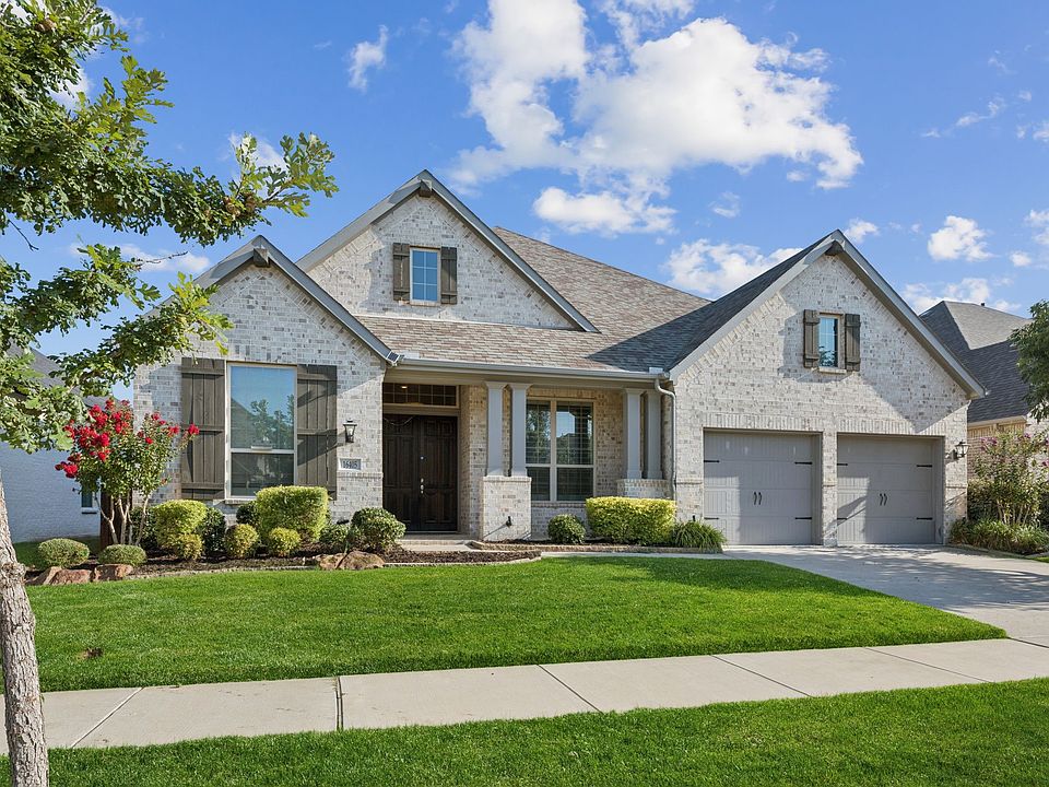 Beautifully maintained, with a THREE CAR GARAGE! This one-owner custom ranch-style home built by Highland Homes offers a perfect blend of elegance and comfort. From its spacious open floor plan to its prime location near world-class entertainment and shopping, this property is designed for both everyday living and entertaining. Enjoy the inviting open-concept layout, enhanced by neutral colors, plantation shutters throughout, and engineered wood flooring (replaced in 2021). The kitchen is a chef’s delight, featuring sleek quartz countertops, a gas cooktop, abundant cabinetry, and a functional island, all seamlessly flowing into the dining and living spaces. Expansive sliding glass patio doors allow natural light to fill the room and create a seamless indoor-outdoor feel. The private and spacious master suite is a true retreat, complete with a spa-like en-suite bathroom, soaking tub, oversized separate shower, dual sinks, and a walk-in closet. Additional bedrooms offer plenty of space, with shades in all rooms and blackout shades in the primary and one secondary bedroom. A spacious media room provides the perfect spot for movie nights, while the three-car tandem garage offers ample storage and parking flexibility. Smart home features include an Ecobee thermostat and Arlo front door locks, providing both convenience and peace of mind. Located just minutes from Dr. Pepper Ballpark, The Star, Legacy West, Cinemark Dining Theater, PGA Headquarters, and the Omni PGA Frisco Resort and Spa, this home offers access to some of North Texas’s best dining, shopping, and entertainment. Commuters will appreciate the easy access to Hwy 380 and the Dallas North Tollway. Neighborhood amenities are second to none, including multiple pools, a splash park, two fitness centers, soccer fields, a dog park, multiple parks, walking trails, and playgrounds. Families will love that the elementary, middle, and high school are just 2 minutes away. Don’t miss the opportunity to make it yours!