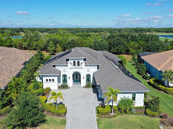 Poised on a private lake and preserve homesite, this 2020 custom-built masterpiece perfectly blends elegant design with the relaxed sophistication of Florida living. Thoughtfully crafted for both entertaining and everyday comfort, this residence offers 3 spacious bedrooms, 4 full baths, an office/den, a large bonus room, and a 3-car side-load garage. Step inside and be captivated by the soaring ceilings, open-concept design, and the seamless flow between indoor and outdoor spaces. The gourmet kitchen is the heart of the home, showcasing sleek quartz countertops, a glass tile backsplash, a walk-in pantry with a stylish barn door, a large center island with seating and storage, and abundant prep space for the inspired chef. The owner’s retreat is a true sanctuary, featuring French doors to the lanai, walk-in closets with custom built-ins, plus a spa-like bath complete with dual sinks, a freestanding soaking tub, and an oversized walk-in shower. Pocketing sliders open wide to reveal a private outdoor oasis—where tranquil lake and preserve views set the stage for unforgettable gatherings. The expansive lanai includes a gas and solar hybrid system heated pool with infinity-edge spa, generous covered entertaining space, and a fully equipped summer kitchen perfect for alfresco dining under the stars. Every detail reflects thoughtful design and quality craftsmanship, from solid wood interior doors, impact glass windows and doors throughout to the solar power system, whole-home water purification, and designer lighting selections that elevate the ambiance throughout. Nestled within Country Club East, residents enjoy resort-style amenities including three pools, a fitness center, and a club room—all within a serene, gated setting close to Sarasota’s acclaimed dining, cultural, and coastal experiences. With A+ rated schools, world-class beaches, and top-tier medical and recreational facilities nearby, this is more than a home—it’s a lifestyle.