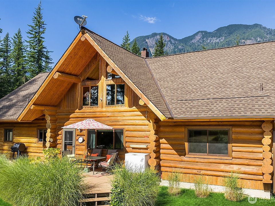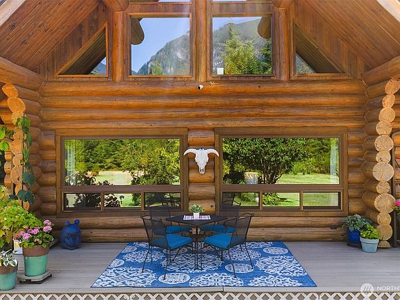 Improved Price! Welcome to your private oasis in the Skykomish Valley! Nestled on 20 peaceful acres, this [Custom-Built Log Home] offers rustic charm, timeless design & stunning mountain views from every window. Zoned R5 & subdividable, this property offers flexibility for future development or AirBnB/STR. The main level features the Primary Suite & 2nd bed, while upstairs you'll find a spacious loft, addl bed & a versatile game room—perfect for hosting or creative use. A soaring river rock fireplace anchors the vaulted great room, adding warmth & dramatic style. The 1,800 SqFt detached steel pole building (50'x36') boasts 200-amp service & 3 oversized 10'x12’ doors—ideal for motorhome, workshop &/or contractor's dream shop. Pre-inspected!