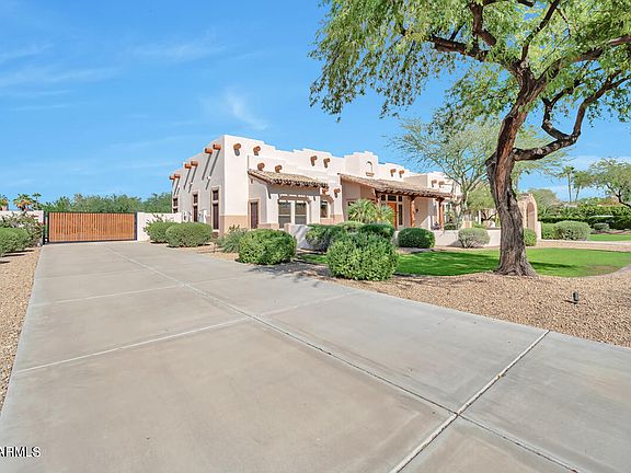 Rare southwest style beauty. Situated on an amazing 1-acre piece of land this gem offers so much. Great open floor plan with fireplace in the great room, oversized kitchen and eating area, split bedroom arrangement, 4 bedrooms, 3 baths, plus a large flex room. Huge yards both front and back. A beautiful pool highlights the enormous backyard. Drive down your stately driveway thru your electronic remote-controlled gate to gain access to your 3 car garage and yard. This entire neighborhood has beautiful streets, huge lots and custom homes. Truly high-end living. More recent and important updates include a new 5-ton HVAC and hot water heater replace in 2022, plus owned solar.