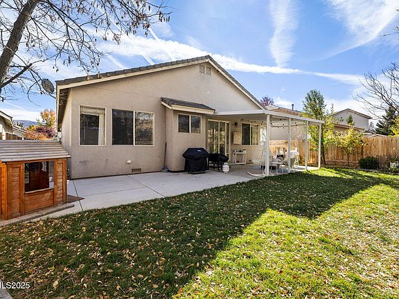 Cozy and inviting, this 4 bedroom, 2 bath home in Damonte Ranch offers 1,676 sq ft of comfortable living space with great curb appeal. The floor plan flows seamlessly, featuring a versatile front bedroom that can serve perfectly as an office or guest room. The spacious primary suite includes a walk-in closet and an abundance of natural light. Step outside to the private backyard, complete with a covered patio, lush lawn, and mature landscaping - ideal for outdoor dining or enjoying peaceful evenings. Enjoy being close to scenic walking trails, parks, top-rated schools, shopping, and restaurants - all within one of Reno's most desirable neighborhoods.