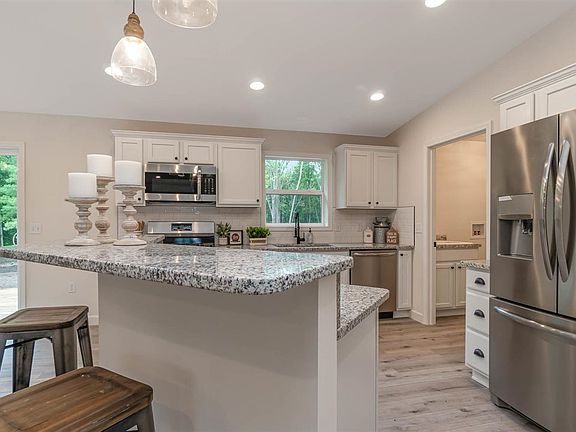Absolutely stunning brand new construction in a serene setting This beautiful ranch is tucked back in the woods on 10 acres in Fraser Twp. Offering an open floor plan that is ideal for entertaining, 3 bedrooms, and 2 full bathrooms. White kitchen with shaker style cabinetry, granite counters, stainless appliances, subway tile backsplash and an island with bar seating. The master features a private bathroom with double sinks. Other features include, a full basement, main floor laundry, a covered porch, forced air and central air, & a 2 car attached garage. Sit out on the back deck and enjoy your tranquil and completely private setting overlooking your own pond and island. This house is a dream come true Schedule your showing before this showstopper is gone