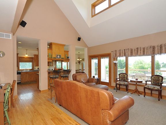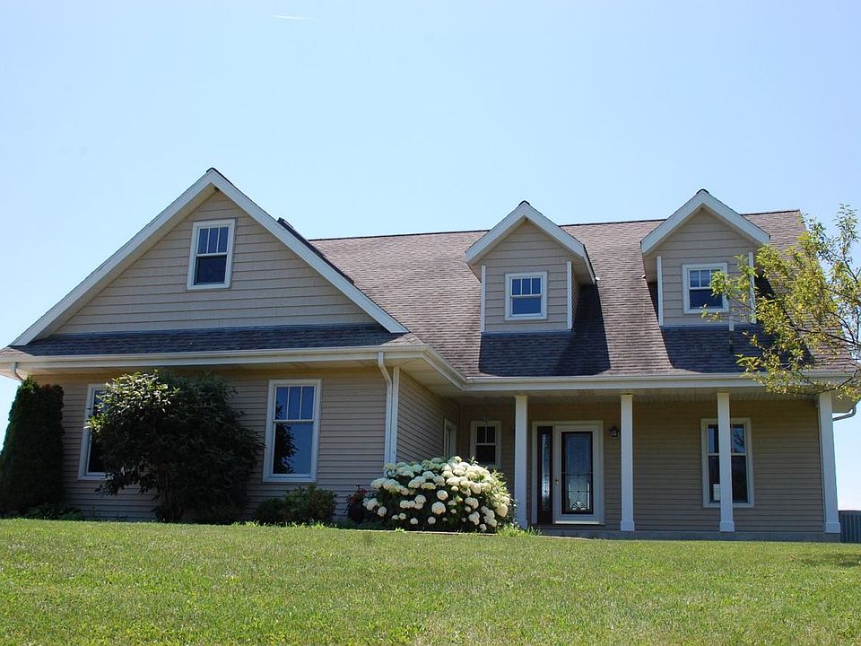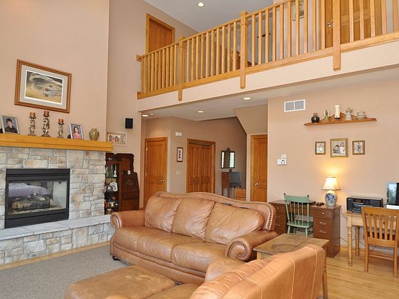 Ahhh...privacy. Set back from the road is this custom home on 5 acres. The KIT has birch cabinets & snack bar & opens to GR with dual-sided GFP 2-story ceiling maple HWF's & patio door leading to deck that overlooks the serene yard & pond. The 1st floor MBR has gas fireplace bath & walk-in closet. A huge upper bonus room is ideal for playroom office etc. Relax & entertain in the finished LL with rec room wet bar 2 addt'l BRs full BA & walkout to patio. This is the one! Home warranty included.