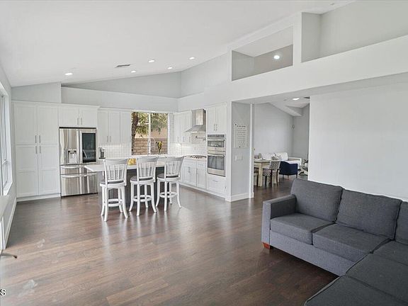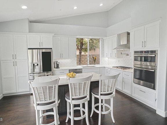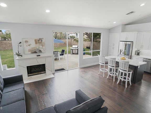 Here is your opportunity to own in the desirable Sea Ridge Estate community in North Oxnard! This SINGLE STORY is located near the River Ridge Fairways. As you enter through the double doors of this stunning home, you will be welcomed with vaulted ceilings, ample natural lighting to the formal living room and dining. Family room has a fireplace that is open to the beautiful kitchen with a lovely island for every day use with quartz counter top, newer white cabinets, appliances, and faucet. Family room sliding door leads to the large backyard which is approximately a quarter of an acre, perfect for entertaining. All four bedrooms are filled with natural light. Master bedroom features a large closet, amazing newer bathroom with huge shower that includes rain shower heads and a double sink vanity. There have been numerous upgrades throughout. Newer hardwood floors, interior and exterior paint, and landscaping of both the front and backyard. The landscaping includes the lawn and the concrete. Some fixtures in the home include recess lighting and shutters/roller shades on the windows. Solar panels and a charging panel for an electric car were also installed making this home both eco-friendly and economically feasible. Close to the River Ridge Golf Course, hotels, local beaches, harbors, marina, 101 freeway, shopping centers, restaurants and much more! This house is a must see!