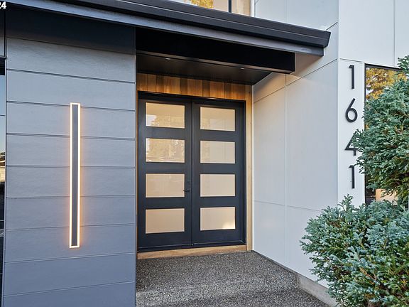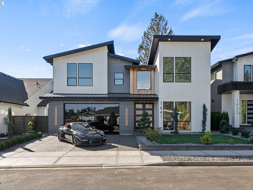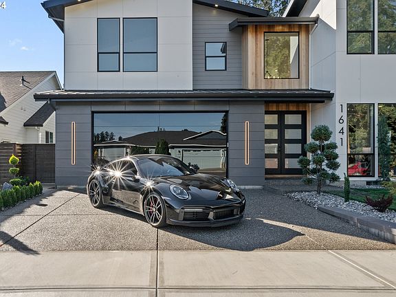 Welcome to 1641 N 25th St, a stunning modern new build in the charming community of Washougal, Washington. This contemporary home built by Viewridge Homes LLC showcases impeccable design and luxurious features throughout. As you step inside, you're greeted by tall ceilings and floor-to-ceiling windows that flood the space with natural light, creating an open and inviting ambiance. The spacious den offers flexibility for a home office or additional living space, while integrated LED lighting details throughout the home add a touch of sophistication. The gourmet kitchen is a chef's dream, featuring a large hidden pantry, sleek modern white cabinetry, top-of-the-line appliances, and stunning waterfall quartz edge island. The living area centers around a striking linear gas fireplace with neutral plaster finish, perfect for relaxing evenings at home. Stunning tile selections throughout the home add a touch of elegance and refined taste. Upstairs, the two spacious vaulted bedrooms provide ample room for play and relaxation, offering a sense of openness and light. Each room is thoughtfully designed to accommodate growing families, ensuring comfort and style. Retreat to the spa-like primary bathroom, complete with a walk-in closet, where luxury and comfort meet. Every detail of this home has been thoughtfully designed to create a seamless blend of style and functionality. The frameless black glass garage door adds a modern touch to the exterior, while the level fenced yard and covered patio provide ample space for outdoor entertaining and play. Located in a peaceful neighborhood with easy access to local amenities, 1641 N 25th St is the perfect place to call home.