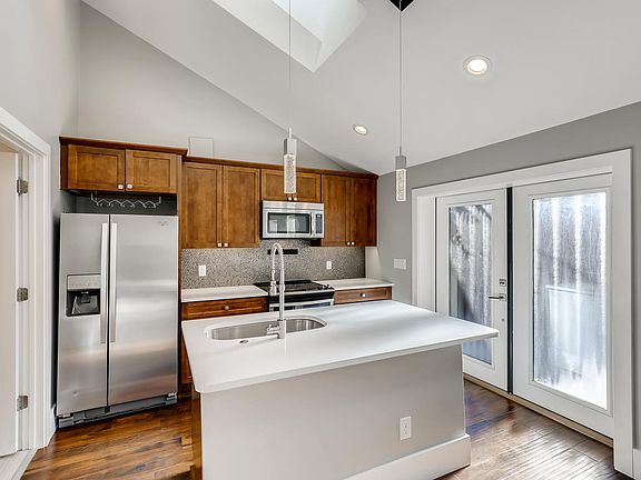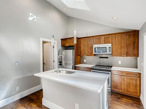 Attic storagePrivate fenced in patioVaulted ceilingAccent tile in bathroomBeautiful finishesBreakfast barBacksplash in kitchen