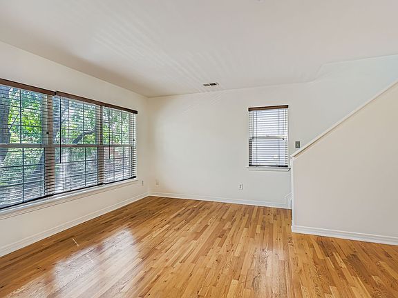 Spacious two-level condo in uptown! Walk to bars, restaurants, shops. Lots of light in this top corner unit with windows on three sides. The first floor has living room, kitchen, dining room, half-bath, and private balcony. Upstairs has two bedrooms, each with a full private bathroom and large closets. Washer and dryer included. Gated front and back entry. Central air conditioning. One garage parking spot included.