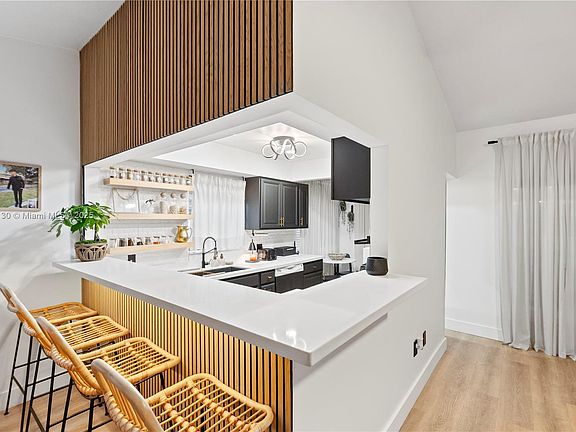 Welcome to this beautifully remodeled 3-bedroom, 2-bathroom corner unit offering 1,382 sq ft of move-in-ready open living space with serene canal and garden views. Discover a transformed interior featuring premium wood laminate flooring throughout, elegant wood wall trims, and crisp 6-inch white baseboards. The kitchen has been updated with refurnished cabinets and countertops. Smooth, modern ceilings (popcorn removal completed) and fresh paint in versatile neutral tones provide the perfect canvas for any décor style. This well-maintained townhome combines modern upgrades with comfortable living. The roof is original and may need future consideration, reflected in the competitive pricing. Don't miss this move-in-ready corner unit with tranquil views and designer touches!