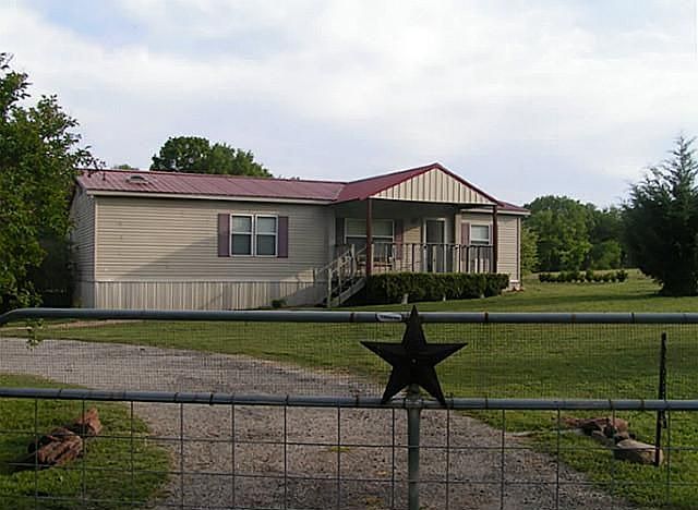 CREEKSIDE 5+ ACRES- You are surrounded by nature and her trees. Clean open floor plan with a huge master bedroom with a walk in closet with built ins. Porches and decks front and back with a 30X24 shop and 24X20 carport. Home has a metal roof and very low electric bill. House, shop and carport have a gated fenced 1+acre yard with trees and flagstone walk ways. Property is neat and clean and move in ready. Come to the country!